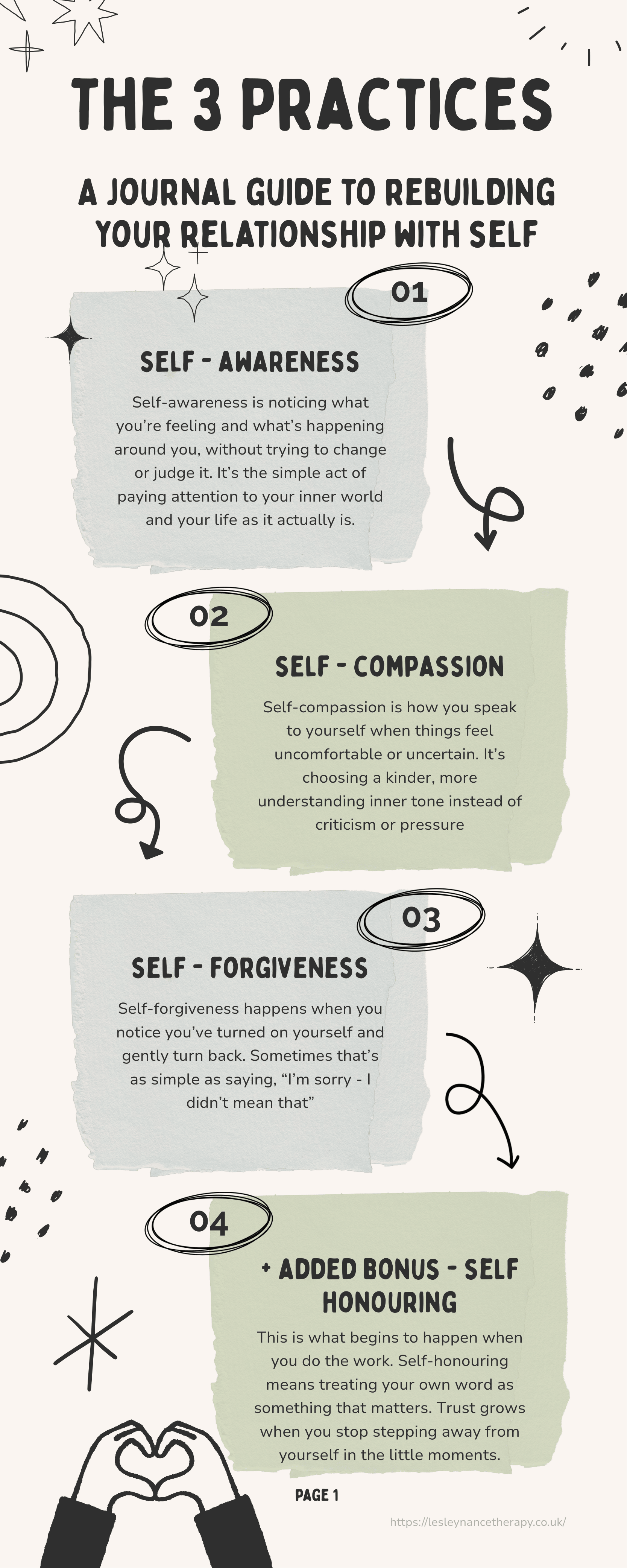 This workbook introduces The 3 Practices I use with every client: Awareness, Compassion, and Forgiveness, with an added focus on Self-Honour.